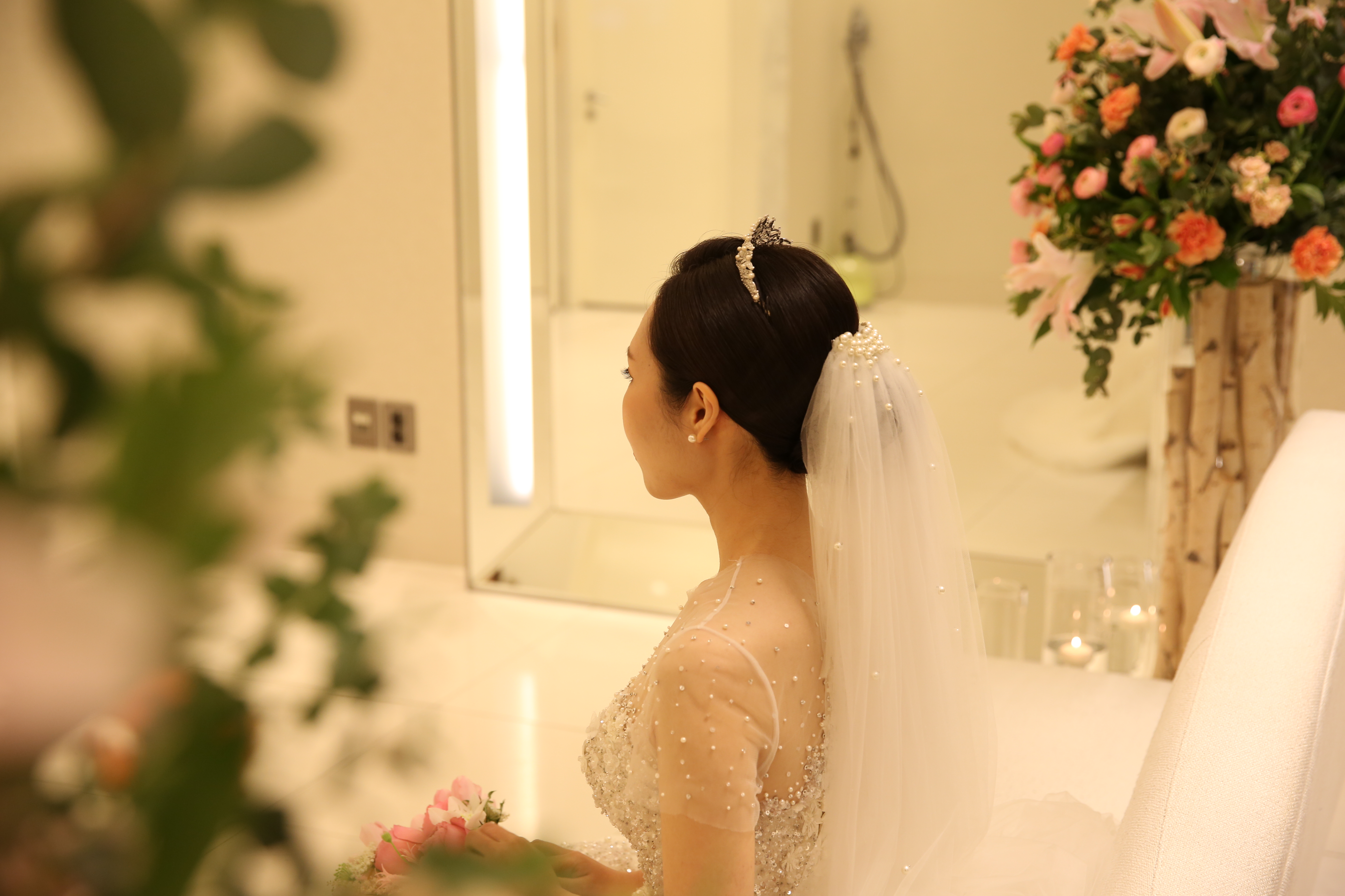 신부대기실 꽃 장식을 꼭 추가하길!