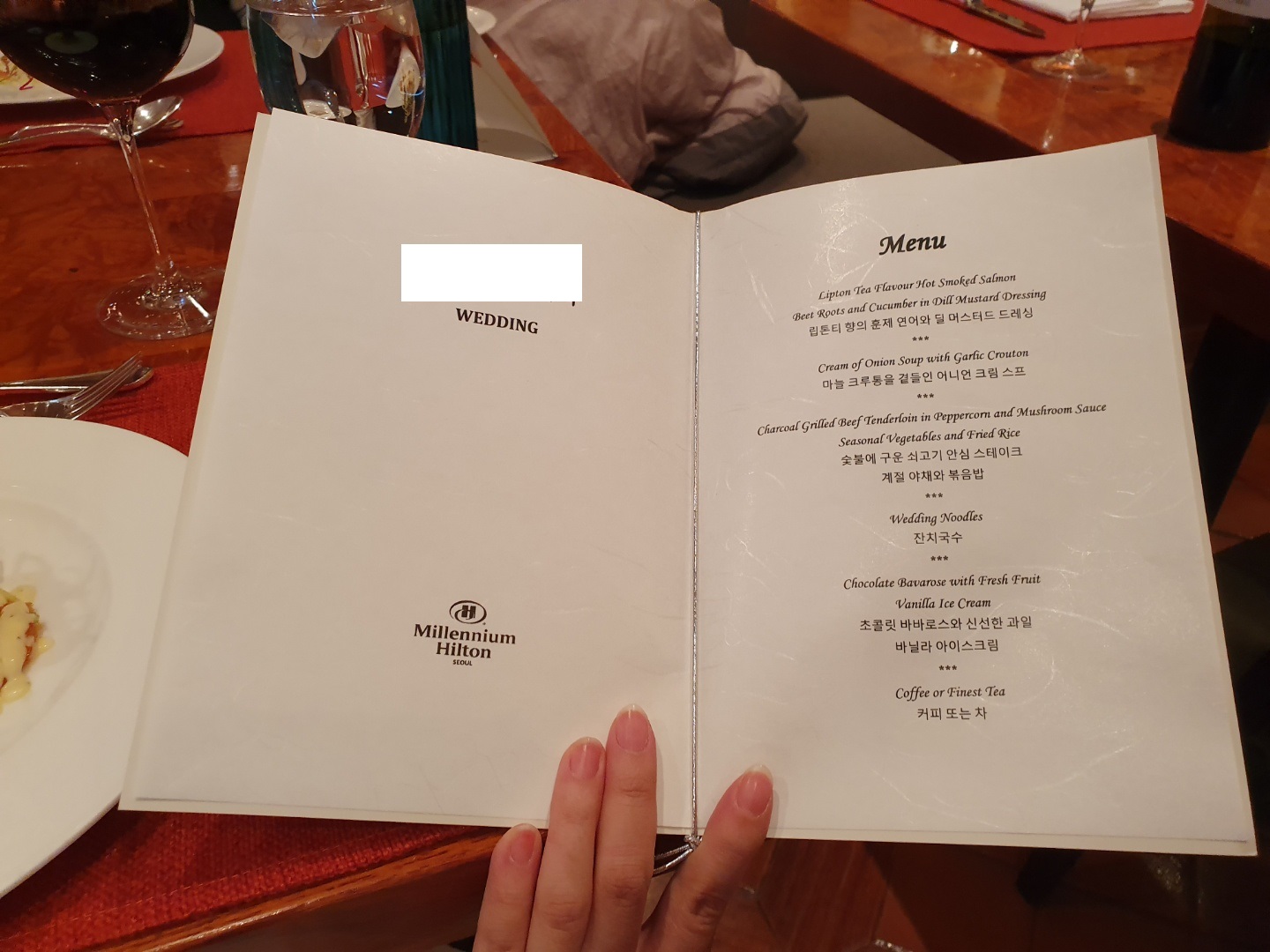 감동했던 부분은 우리를 위해서 미리 우리 이름이 새겨진 웨딩 메뉴 카드를 준비해주셔서ㅎㅎㅎ
